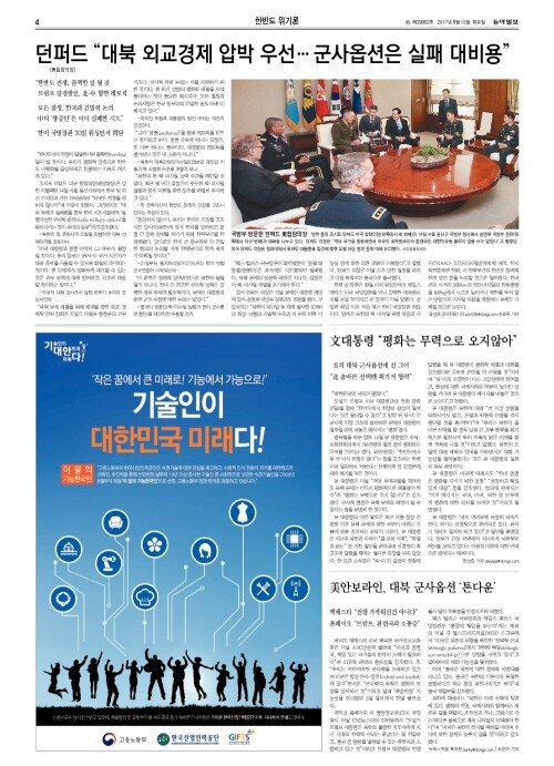 던퍼드 “대북 외교경제 압박 우선… 군사옵션은 실패 대비용”