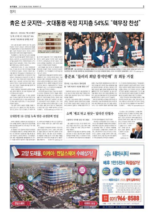 靑은 선 긋지만… 문재인 대통령 국정 지지층 54%도 “핵무장 찬성”