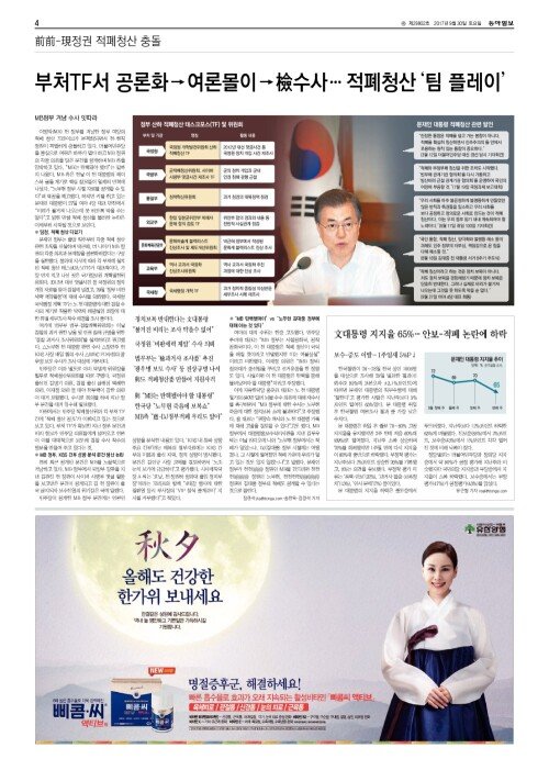 문재인 대통령 지지율 65%… 안보-적폐 논란에 하락