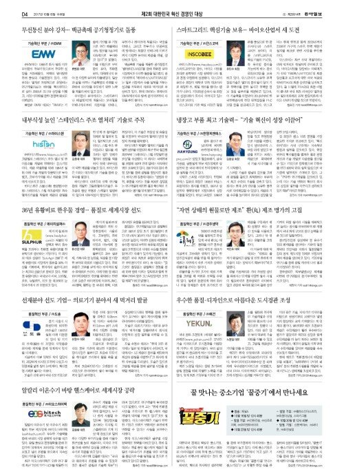 - [제2회 대한민국 혁신 경영인 대상]36년 유황비료 한우물 경영… 품질로 세계시장 선도