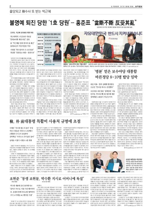 불명예 퇴진 당한 ‘1호 당원’… 홍준표 “當斷不斷 反受其亂”
