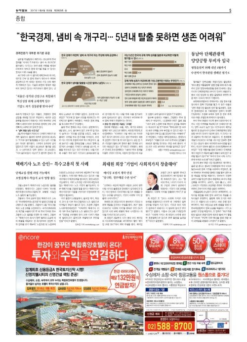 “한국경제, 냄비 속 개구리… 5년내 탈출 못하면 생존 어려워”