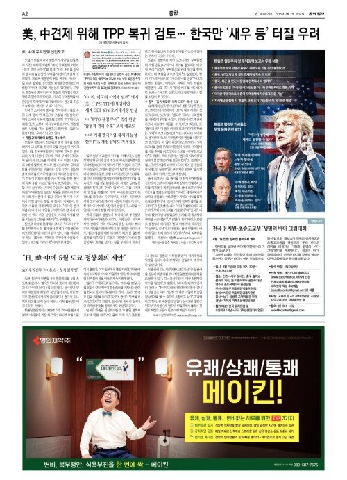 美, 中견제 위해 TPP 복귀 검토… 한국만 ‘새우 등’ 터질 우려