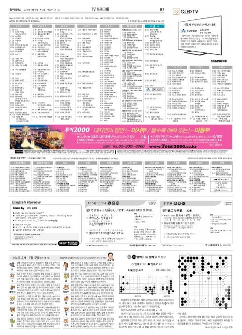 B섹션 7면 TV프로그램/바둑/외국어/운세