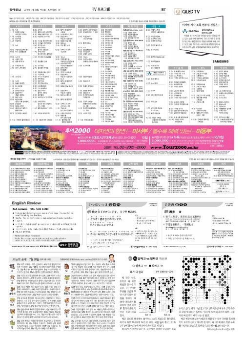 B섹션 7면 TV프로그램/바둑/외국어/운세
