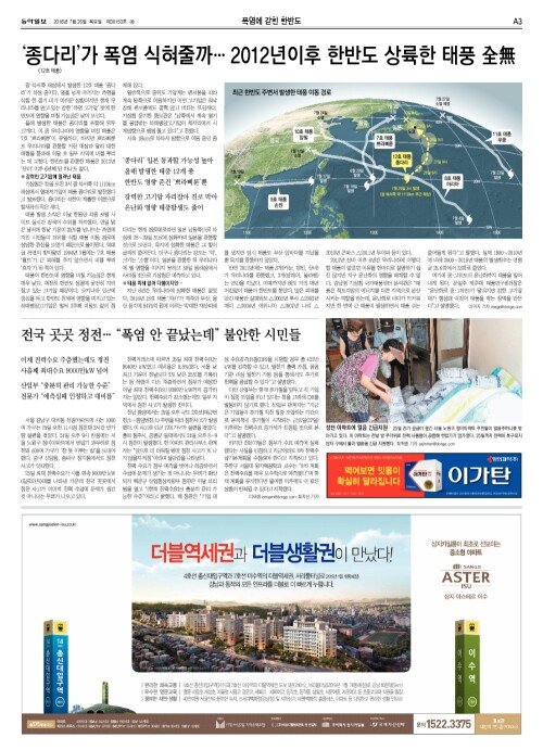 ‘종다리’가 폭염 식혀줄까… 2012년이후 한반도 상륙한 태풍 全無