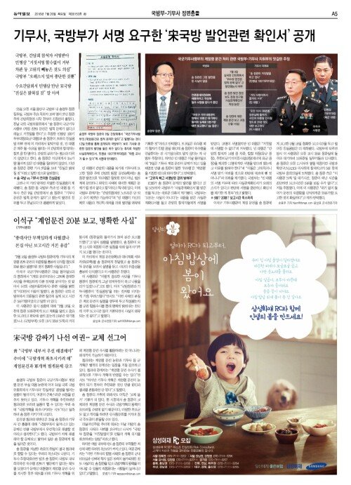 기무사, 국방부가 서명 요구한 ‘송영무 국방 발언관련 확인서’ 공개