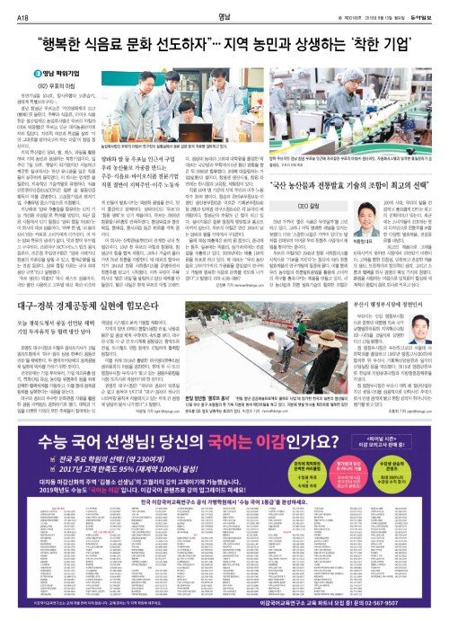 [영남 파워기업]“행복한 식음료 문화 선도하자”… 지역 농민과 상생하는 ‘착한 기업’