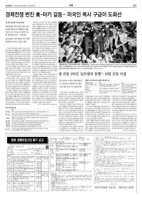 경제전쟁 번진 美-터키 갈등… 미국인 목사 구금이 도화선