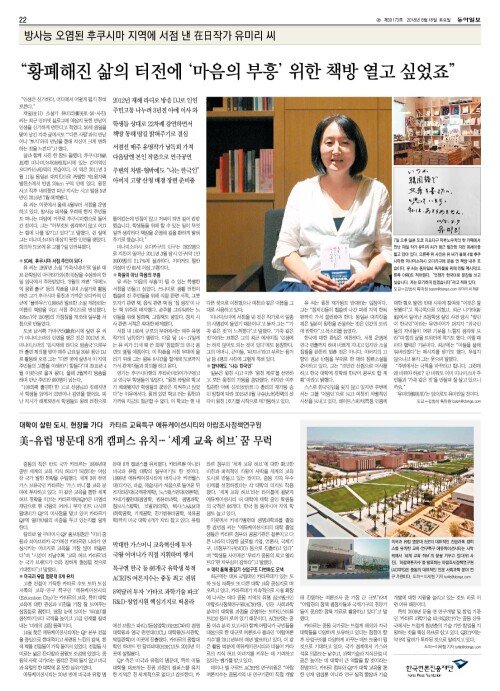 유미리 씨 “황폐해진 삶의 터전에 ‘마음의 부흥’ 위한 책방 열고 싶었죠”