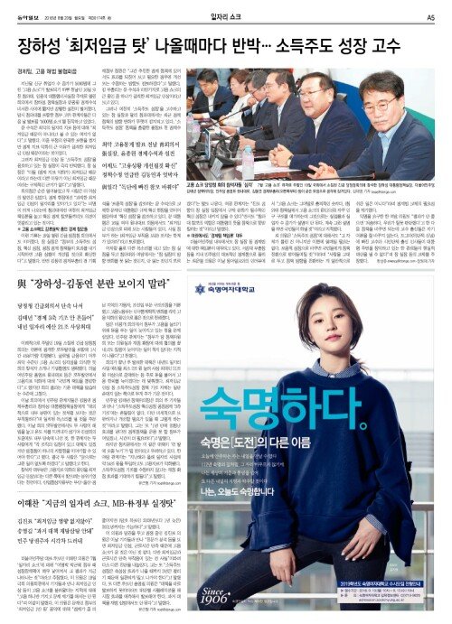 장하성 ‘최저임금 탓’ 나올때마다 반박… 소득주도 성장 고수