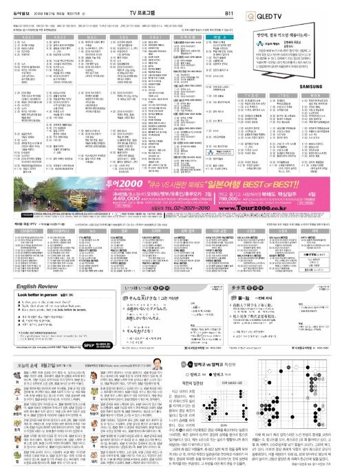 B섹션 11면 TV프로그램/바둑/외국어/운세