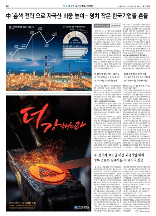中 ‘홍색 전략’으로 자국산 비중 높여… 덩치 작은 한국기업들 흔들