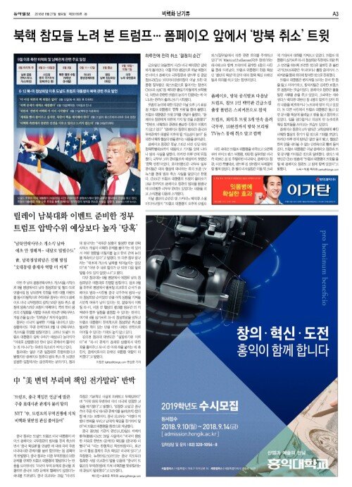 북핵 참모들 노려 본 트럼프… 폼페이오 앞에서 ‘방북 취소’ 트윗
