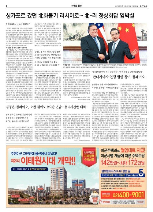싱가포르 갔던 北화물기 러시아로… 北-러시아 정상회담 임박설