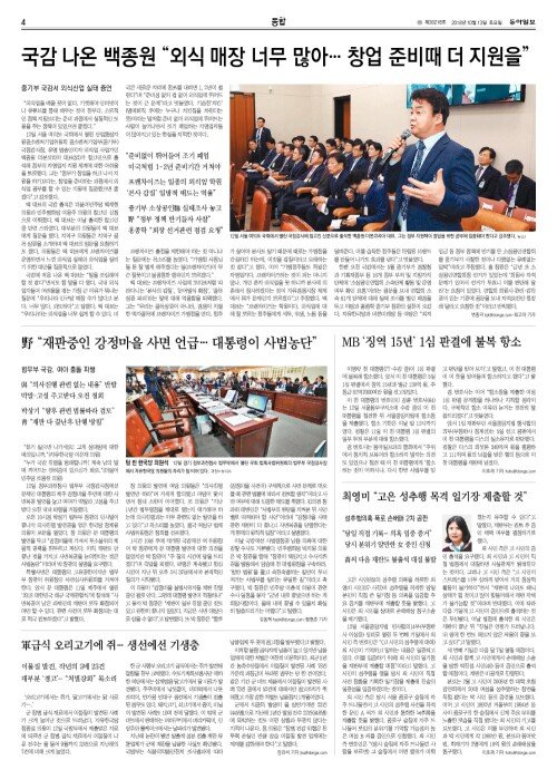 국감 나온 백종원 “외식 매장 너무 많아… 창업 준비때 더 지원을”