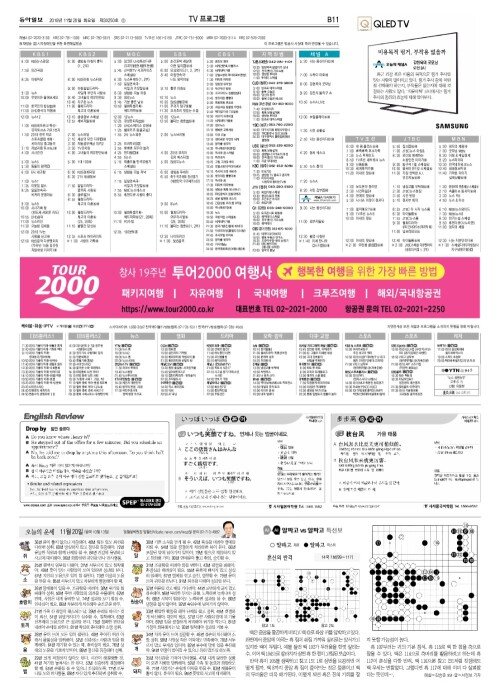 B섹션 11면 TV프로그램/외국어/운세/바둑