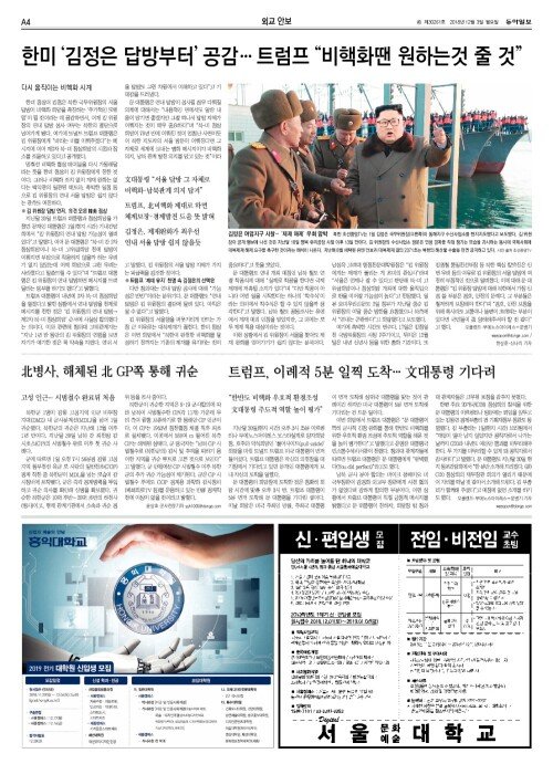 [사설]트럼프 “비핵화하면 바라는 바 이뤄줄 것”… 北 마지막 기회다
