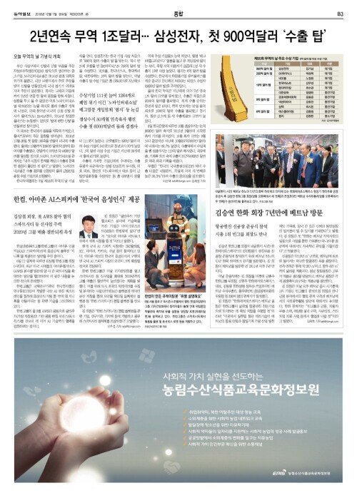 2년연속 무역 1조달러… 삼성전자, 첫 900억달러 ‘수출 탑’