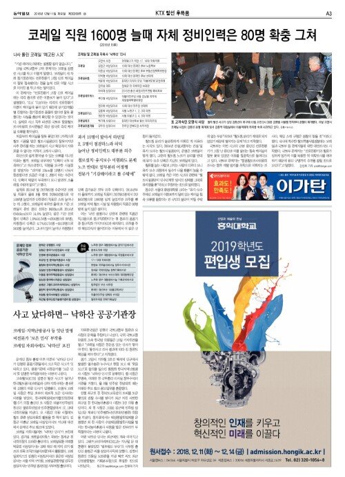 코레일 직원 1600명 늘때 자체 정비인력은 80명 확충 그쳐