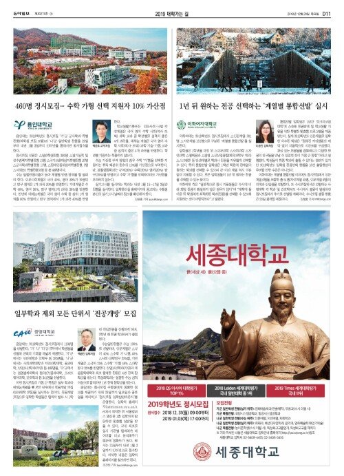 미술계열 서울캠 ‘나’군-세종캠 ‘가’군 복수지원 가능