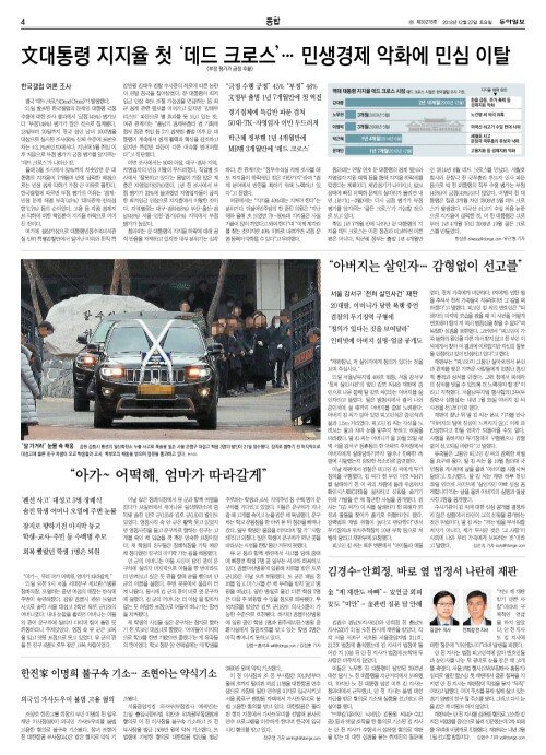 문재인 대통령 지지율 첫 ‘데드 크로스’… 민생경제 악화에 민심 이탈