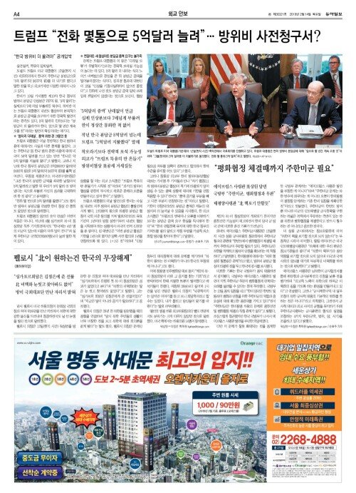 트럼프 “전화 몇통으로 5억달러 늘려”… 방위비 사전청구서?
