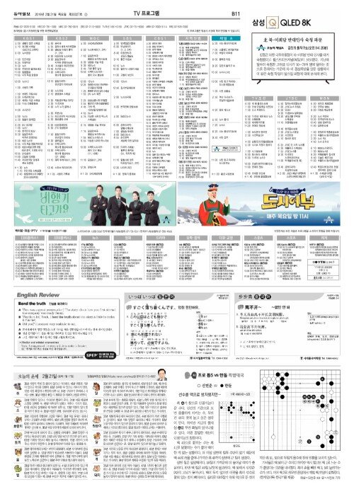 B섹션 11면 TV프로그램/운세/바둑/외국어