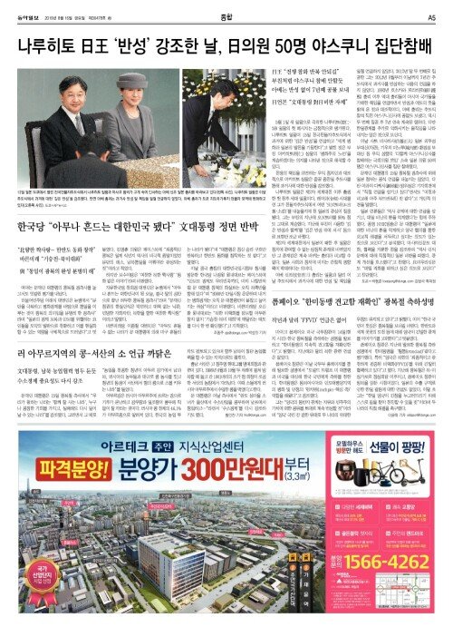 나루히토 日王 ‘반성’ 강조한 날, 日의원 50명 야스쿠니 집단참배