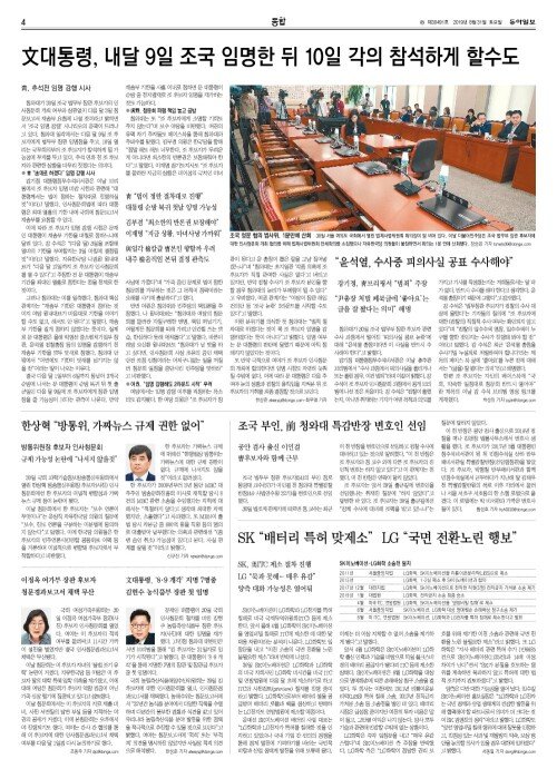 文대통령, 내달 9일 조국 임명한 뒤 10일 각의 참석하게 할수도