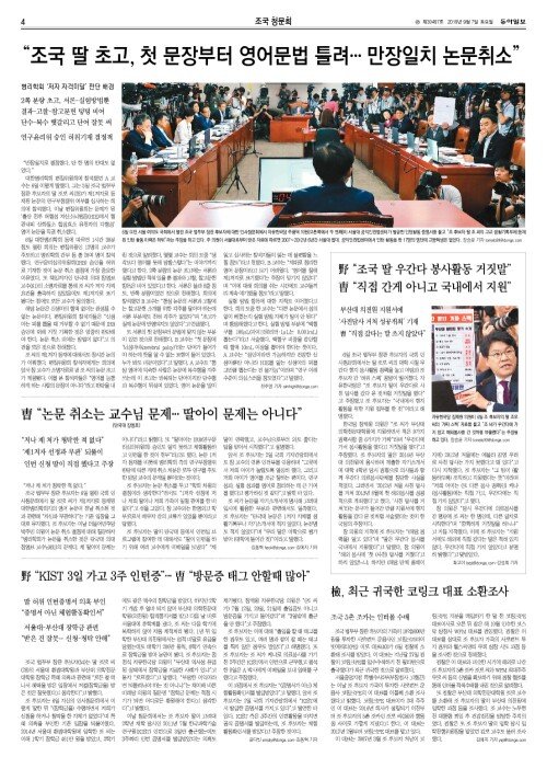 “조국 딸 초고, 첫 문장부터 영어문법 틀려… 만장일치 논문취소”