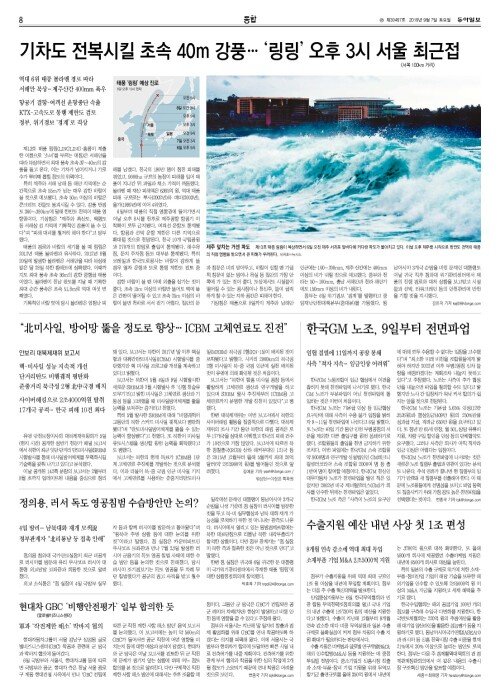 기차도 전복시킬 초속 40m 강풍… ‘링링’ 오후 3시 서울 최근접