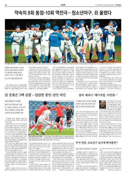 약속의 8회 동점-10회 역전극… 청소년야구, 日 울렸다