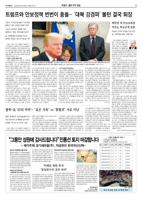 [사설]매파 볼턴의 퇴장, 北은 오판 말라