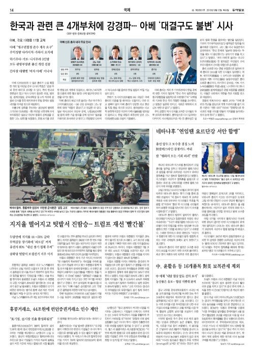 한국과 관련 큰 4개부처에 강경파… 아베 ‘대결구도 불변’ 시사