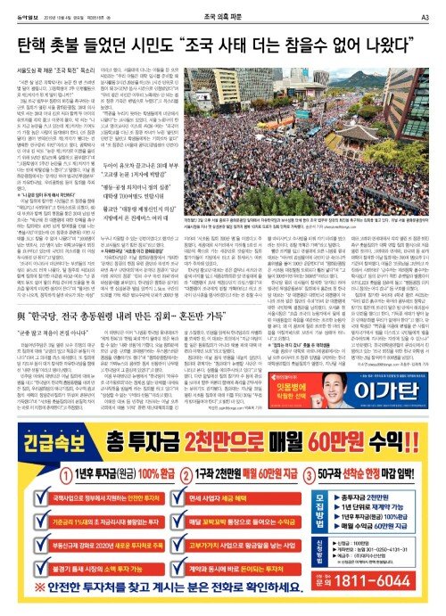 탄핵 촛불 들었던 시민도 “조국 사태 더는 참을수 없어 나왔다”