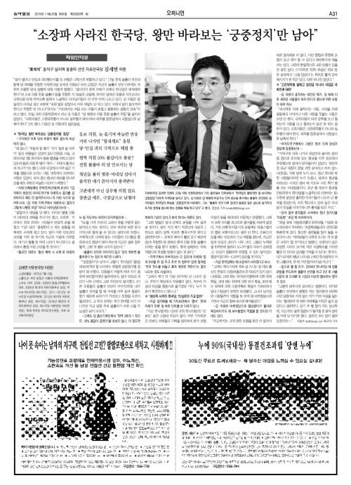 “소장파 사라진 한국당, 왕만 바라보는 ‘궁중정치’만 남아”[파워 인터뷰]