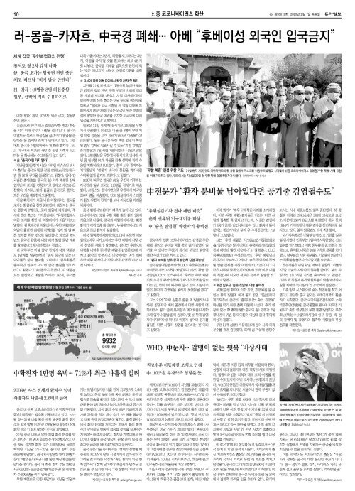 러-몽골-카자흐, 中국경 폐쇄… 아베 “후베이성 외국인 입국금지”