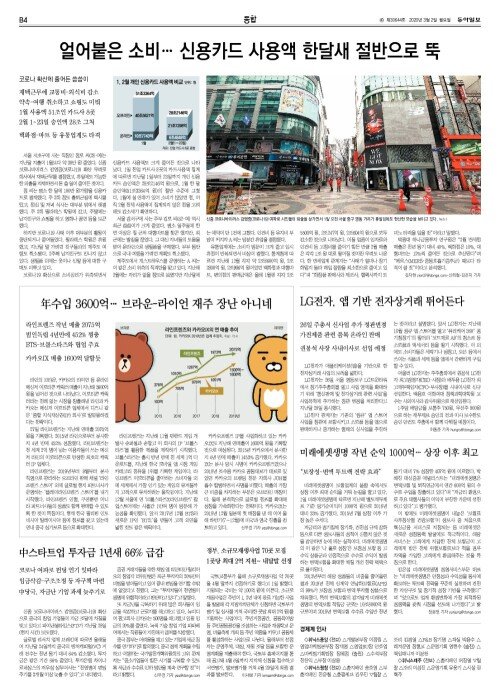 얼어붙은 소비… 신용카드 사용액 한달새 절반으로 뚝
