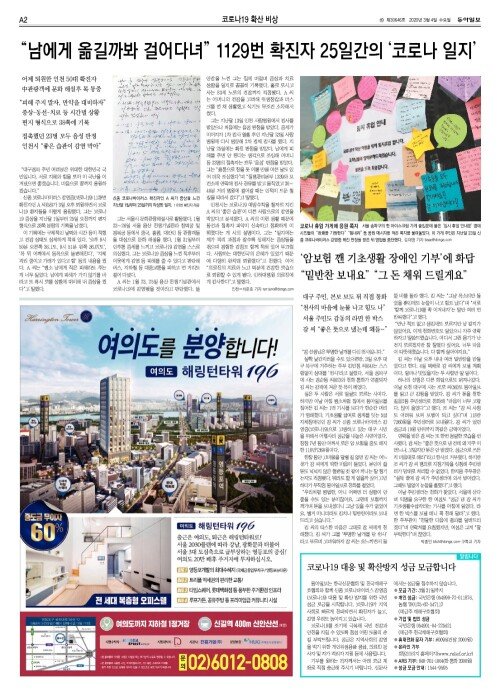 “남에게 옮길까봐 걸어다녀” 1129번 확진자 25일간의 ‘코로나 일지’