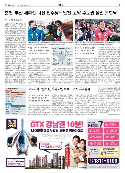 춘천-부산 세확산 나선 민주당… 인천-고양 수도권 올인 통합당
