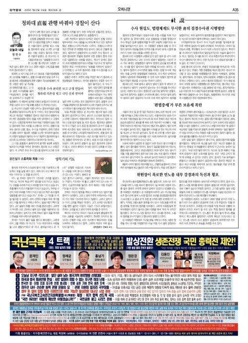 [사설]수사 현실도, 법령체계도 무시한 靑의 검경수사권 시행령안