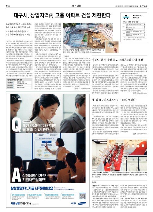 대구시, 상업지역內 고층 아파트 건설 제한한다