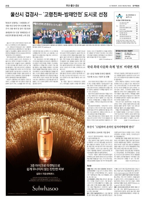 울산시 겹경사… ‘고령친화-방재안전’ 도시로 선정
