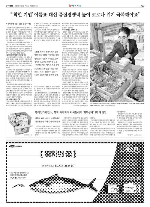 “‘착한 기업’ 이름표 대신 품질경쟁력 높여 코로나 위기 극복해야죠”