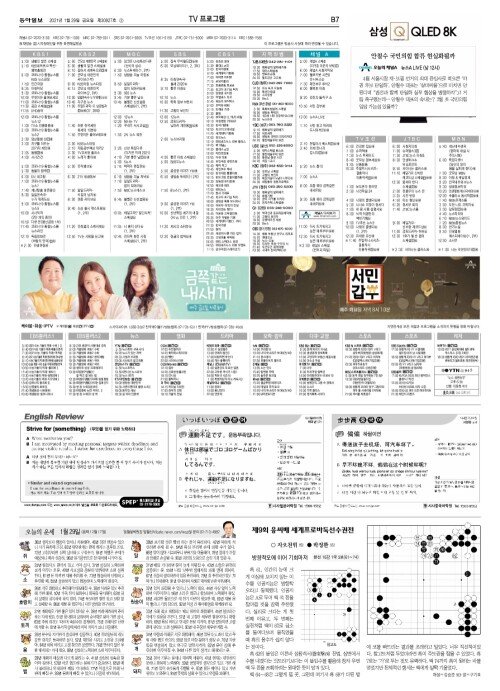 B섹션 7면 TV프로그램/운세/외국어/바둑