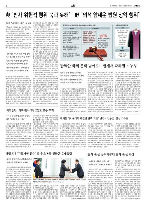 與 “판사 위헌적 행위 묵과 못해”… 野 “의석 앞세운 법원 장악 행위”
