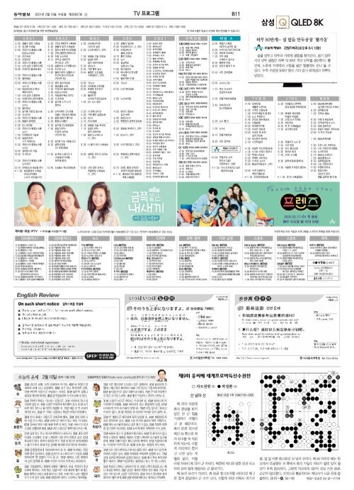 B섹션 11면 TV프로그램/운세/외국어/바둑