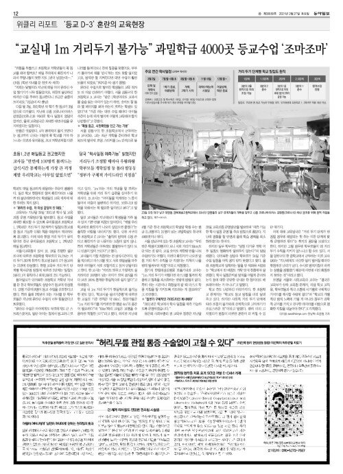 “교실내 1m 거리두기 불가능” 과밀학급 4000곳 등교수업 ‘조마조마’