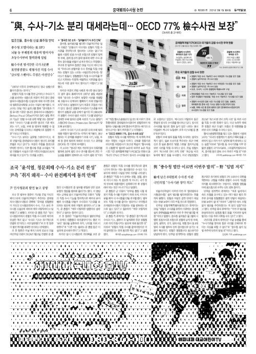 “與, 수사-기소 분리 대세라는데… OECD 77% 檢수사권 보장”
